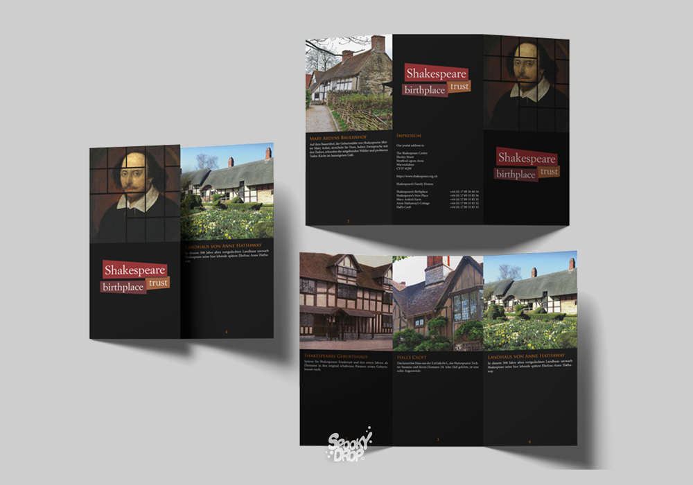 Tri-Fold Flyer for the Shakespeare Museum in Stratford-upon-Avon.