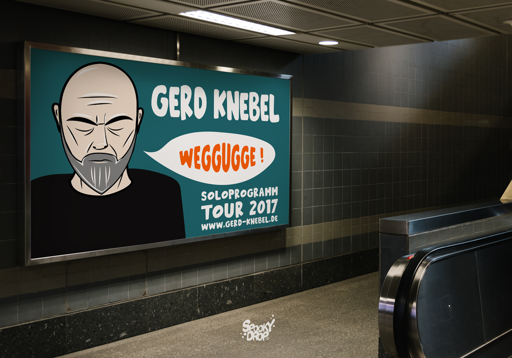 A large poster in a 18/1 format i made that in Adobe Illustrator for "Gerd Knebel" known from the comedy-dou "Badesalz" a great German musican & comedian for his 2017 Tour called "WEGGUGGE"